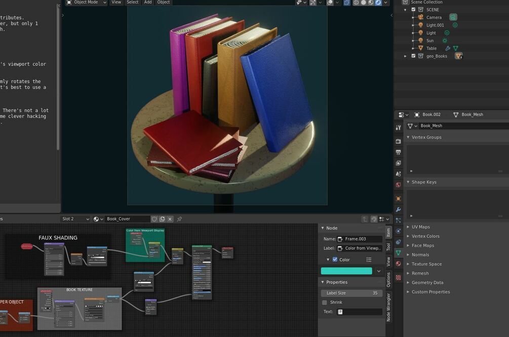 You'll notice multiple "Book" objects in the outliner, but only 1 data block "Book_Mesh". They all reference this mesh.